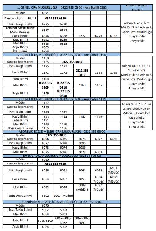 Adana İcra Daireleri Başkanlığı İletişim Bilgileri